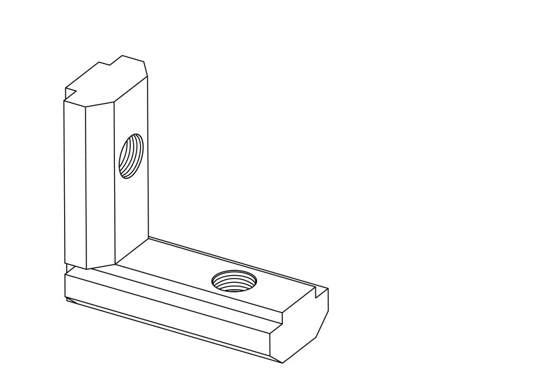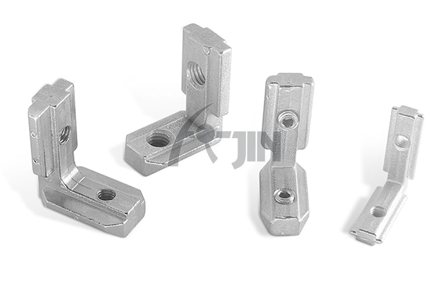 用于兩型材的直角連接,安裝時(shí)將其兩端分別插入型材槽坑內(nèi),將緊固螺絲鎖緊。根據(jù)型材的槽寬及連接方式請(qǐng)選用不同的角槽連接件。