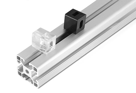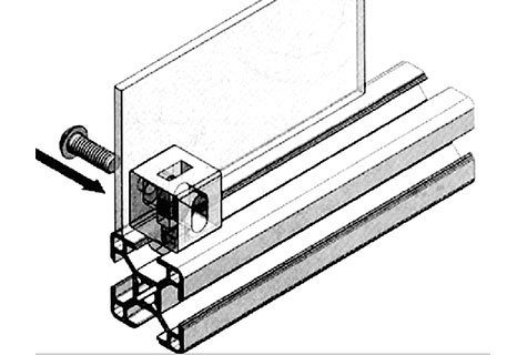 將此連接塊尾端直接插入型材槽坑內,轉動90度后即緊密固定在型材上,然后就可在型材上安裝有機玻璃等各種面板,再用螺栓鎖緊,安裝簡潔,拆卸方便。