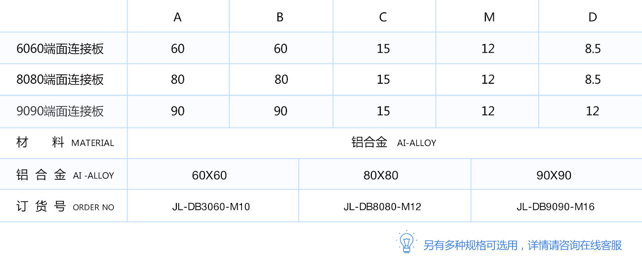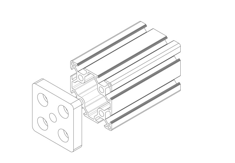 端面連接板主要用于矩形和大尺寸多孔方形型材與蹄腳及腳輪等配件連接時,起過渡作用。