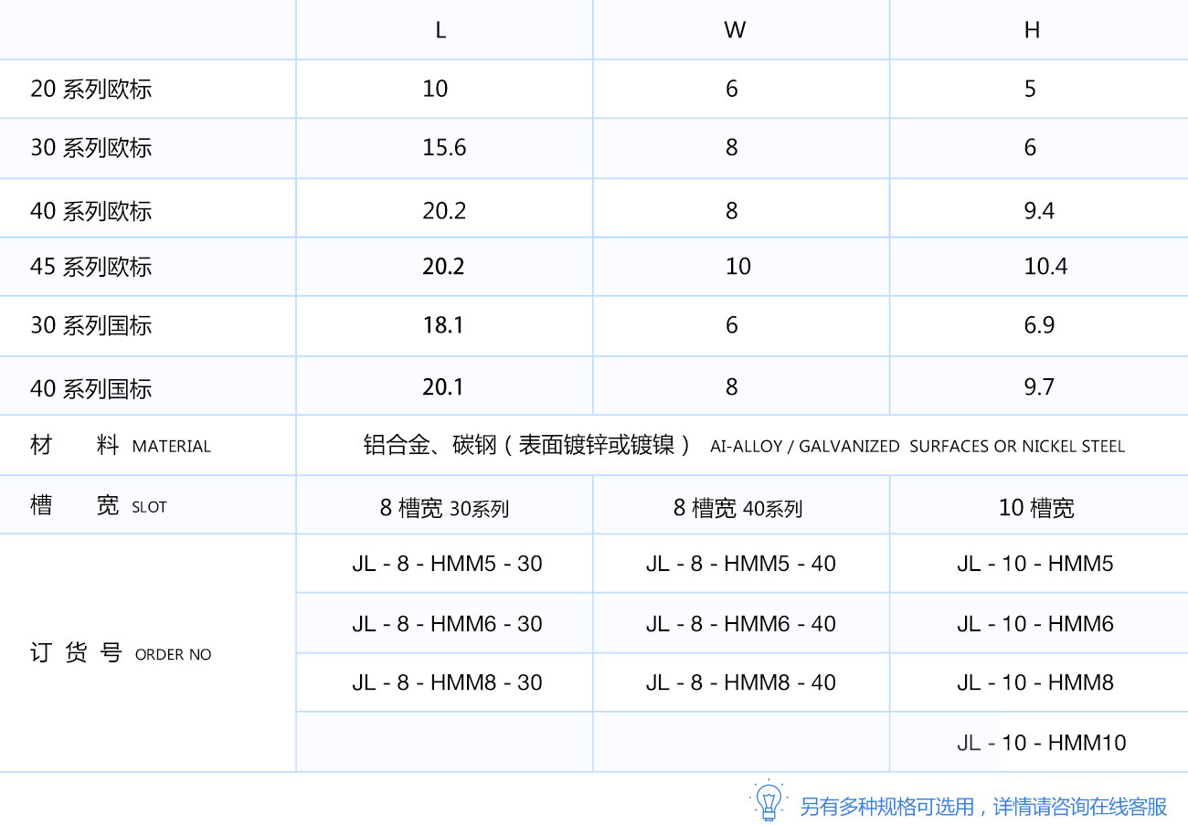 滑塊螺母安裝時需預塞至型材槽坑內(nèi),便于在型材上連接各種配件。