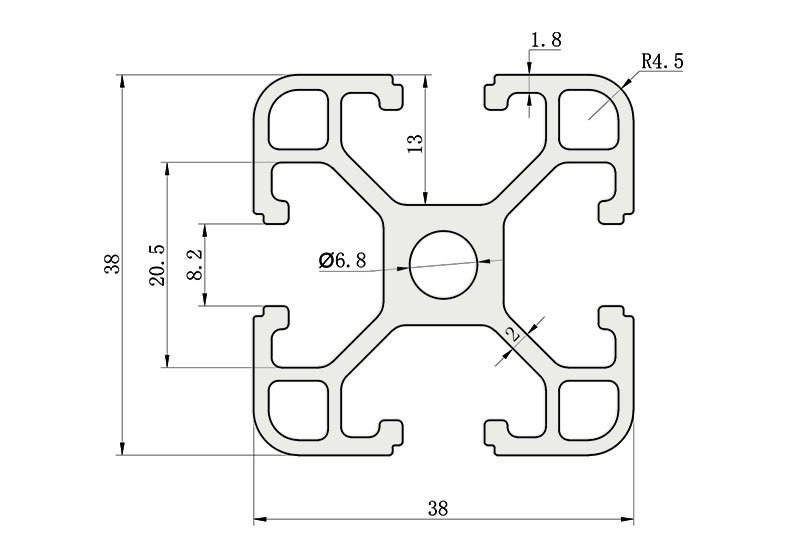 適用于應力及強度較大的框架組合結構,它的外型采用圓角過渡,表面經過陽極氧化處理,高雅美觀并抗腐蝕,它通常采用M8X20高強度專用螺栓加彈性扣件的內部連接方式,堅固而又可靠,是工業(yè)框架應用較為廣泛的型材之一。
