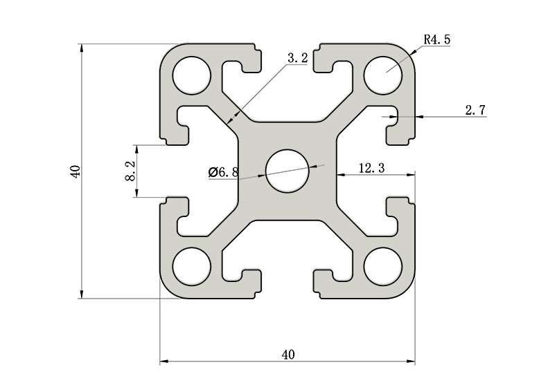 適用于應(yīng)力及強度較大的框架組合結(jié)構(gòu),它的外型采用圓角過渡,表面經(jīng)過陽極氧化處理,高雅美觀并抗腐蝕,它通常采用M8X20高強度專用螺栓加彈性扣件的內(nèi)部連接方式,堅固而又可靠,是工業(yè)框架應(yīng)用較為廣泛的型材之一。