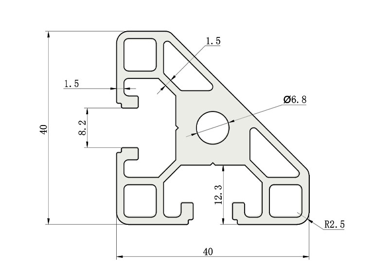 適用于應力及強度較大的框架組合結構,它的外型采用圓角過渡,表面經過陽極氧化處理,高雅美觀并抗腐蝕,它通常采用M8X20高強度專用螺栓加彈性扣件的內部連接方式,堅固而又可靠,是工業(yè)框架應用較為廣泛的型材之一。